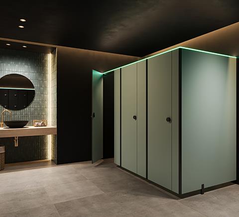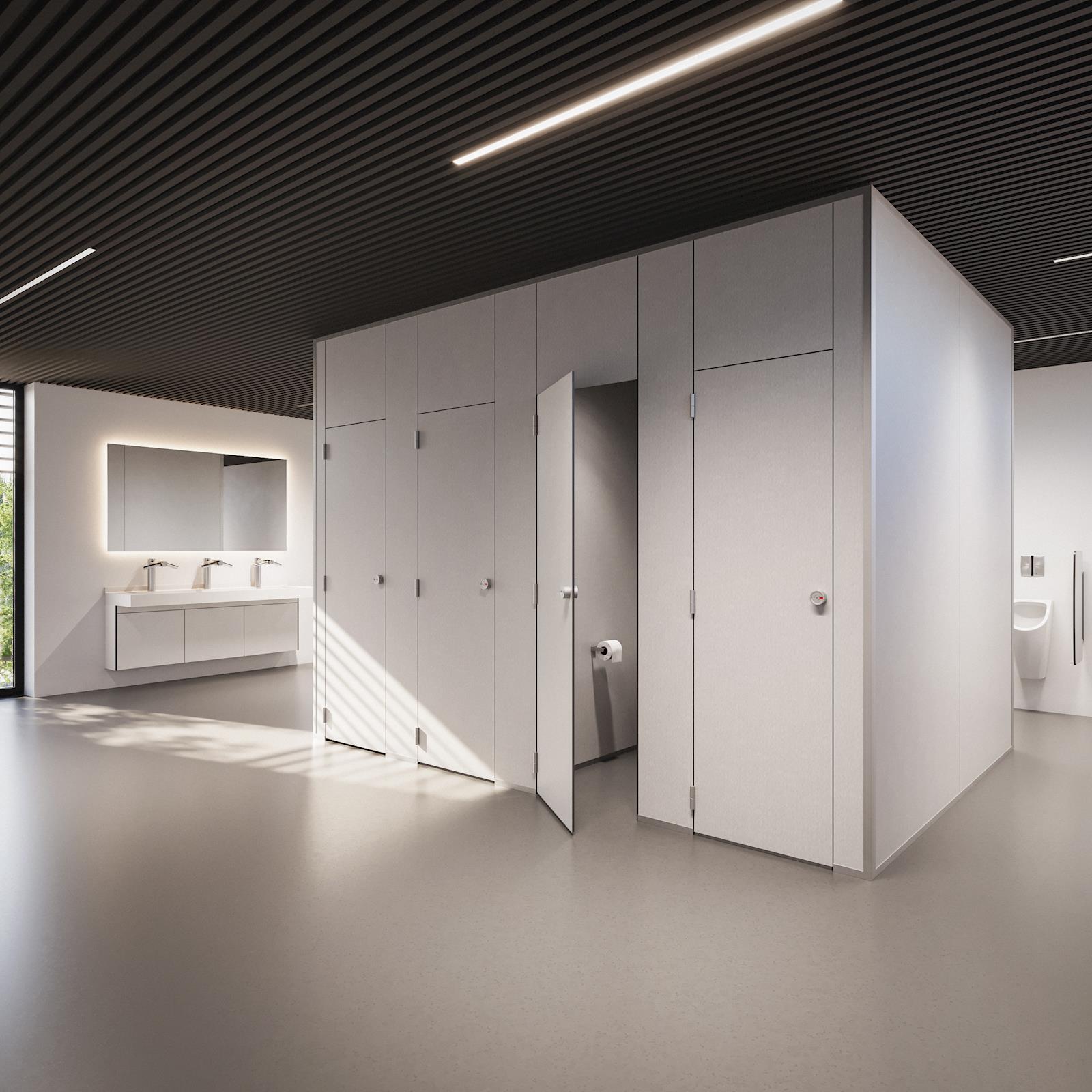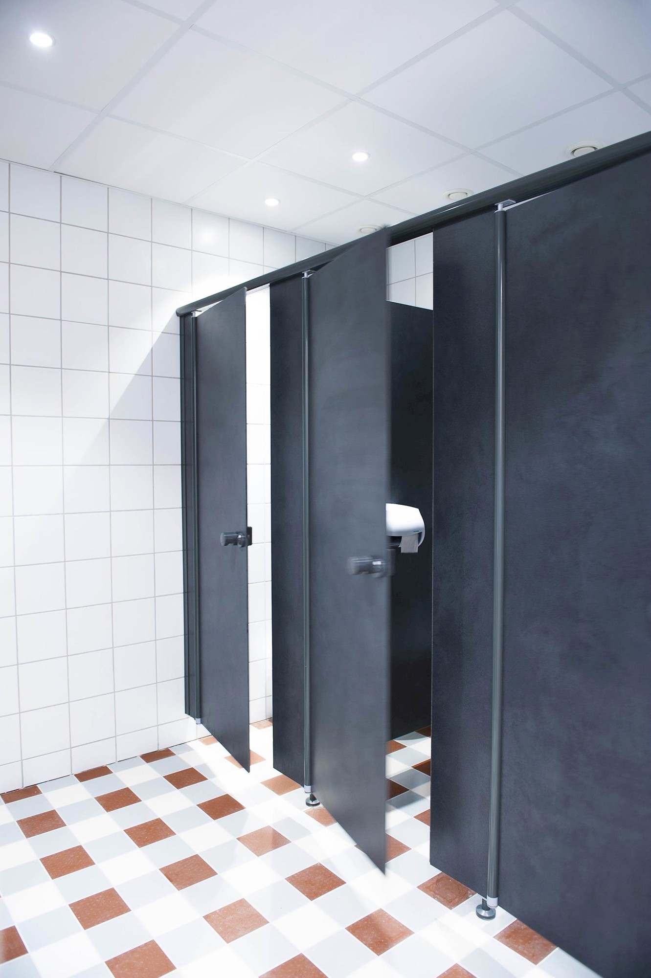 De wanden uit massieve kunststofplaten zijn zeer slijtvast, waterbestendig, antibacterieel en buitengewoon onderhoudsvriendelijk.